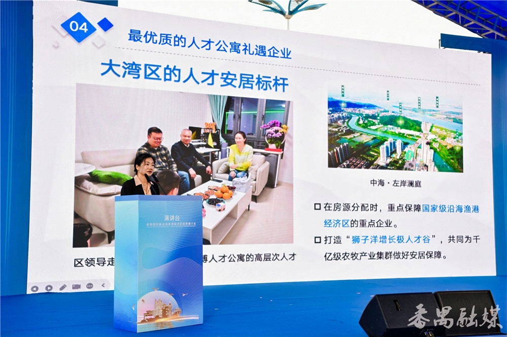 活动当日,推介会现场高朋满座,热闹非凡,共有70家意向投资签约和目标招商企业纷至沓来,寻找商机。活动现场播放了番禺国家级沿海渔港经济区招商视频,石楼镇和渔港专班分别向与会客商推介国家级渔港经济区建设进展和招商项目情况,为投资者提供详实的决策依据,并向全球投资者发出邀约,共享湾区机遇,共筑蓝色经济新高地。番禺区委组织部同步宣讲了“番禺人才生态30条”、人才服务卡等最新人才政策,包括为企业提供科研经费支持、子女入学、医疗服务、住房优惠等“政策大礼包”,为大家解除后顾之忧。