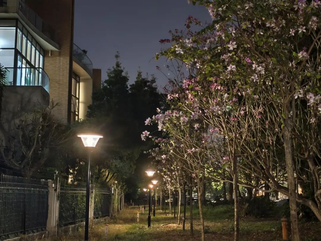 3月中旬,18盏LED灯正式亮灯,灯光在绿化带小径上勾勒出柔和光晕,照亮了曾因植被茂密形成的监控盲区,如今晚归的业主无需再紧盯手机闪光灯探路。别墅区林阿姨在业主群晒出对比图:“以前晚上庭院黑得不敢开窗,现在灯光透过百叶窗洒进来,居住在这里多了份安全感。”