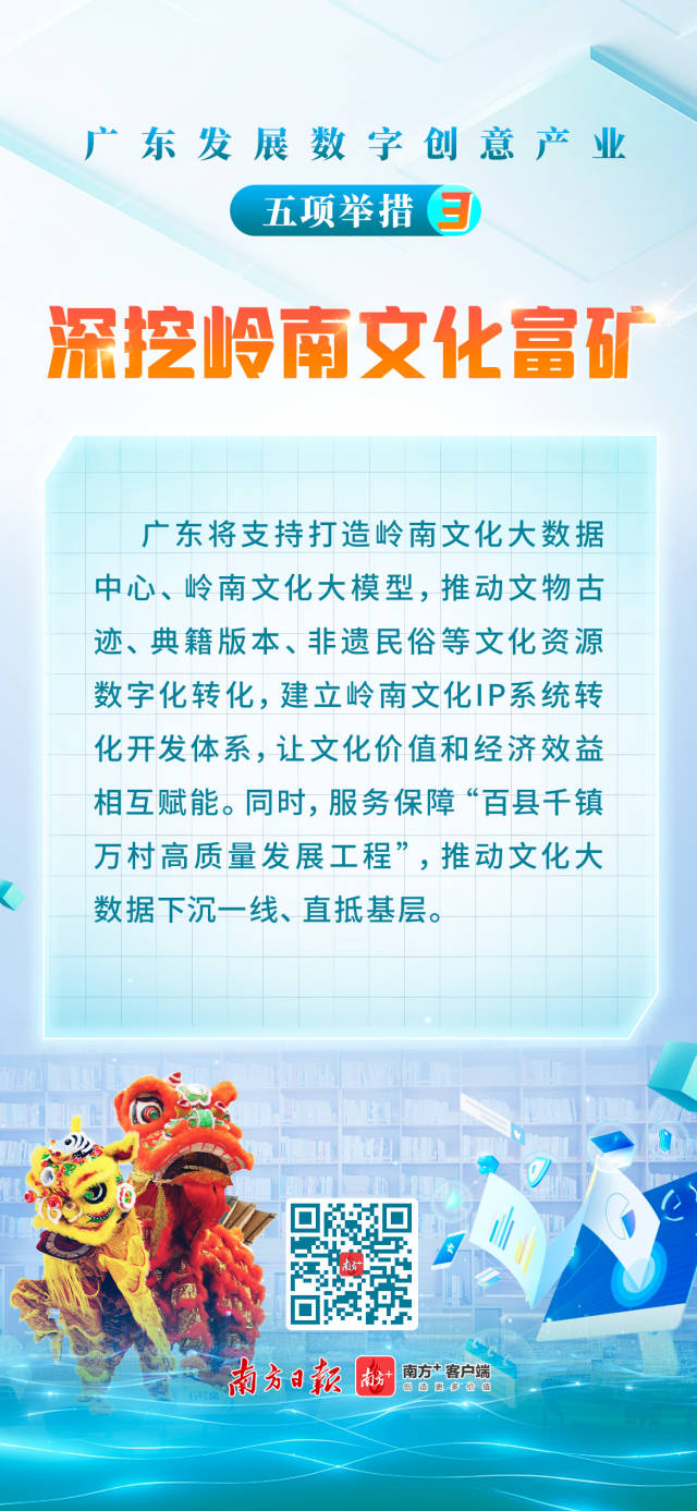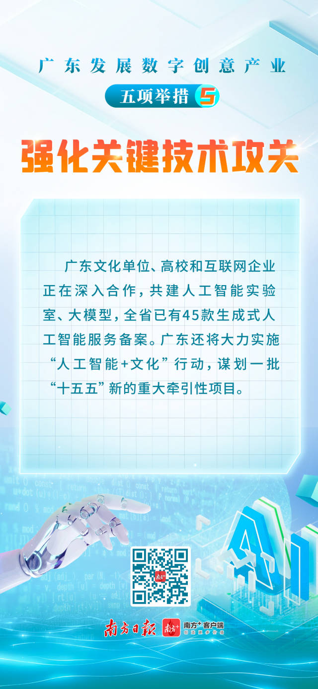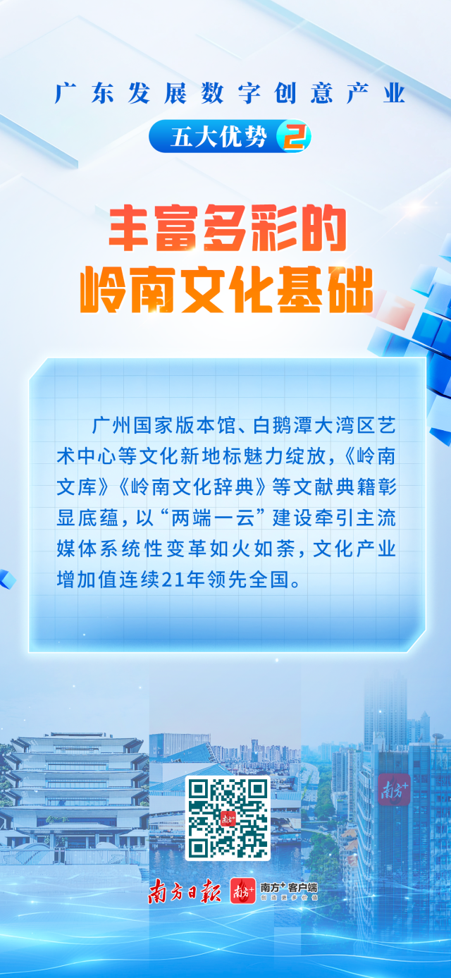 广东将依托独特的“五大优势”,实施诚意满满的“五项举措”,紧抓人工智能等科技创新发展机遇,探索文化和科技融合发展的有效路径,不断激发文化产业创新发展活力,为中国式现代化建设的广东实践贡献文化力量。