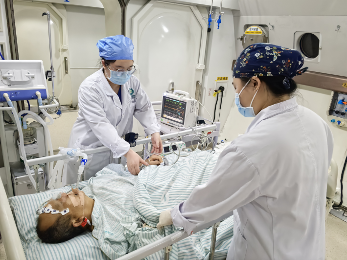 (入院当晚紧急开舱为患者进行高压氧治疗)