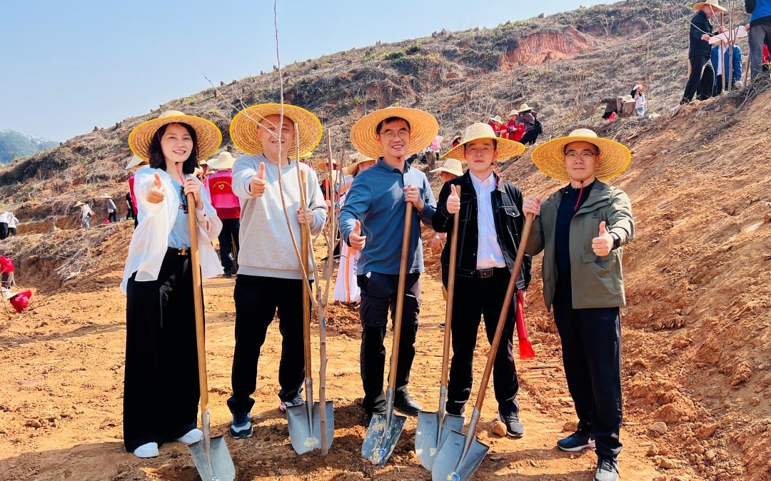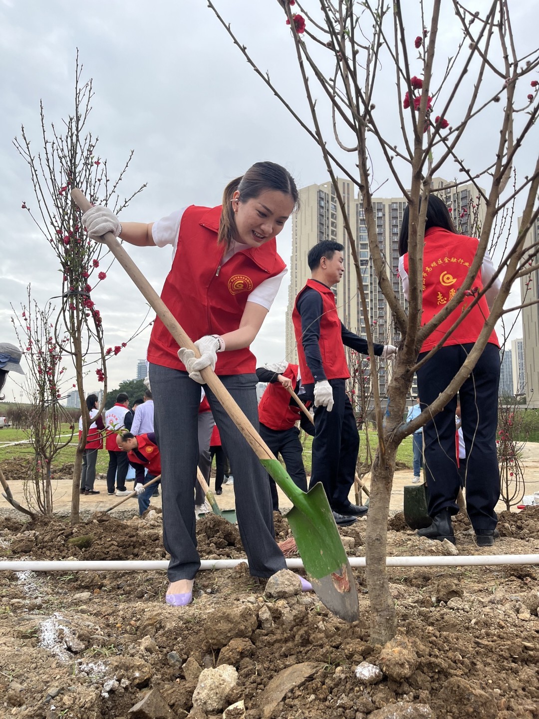 农行佛山高明支行在佛山市高明区金融行业协会的组织下,号召青年志愿服务队与全体会员单位代表齐赴高明区苏村花海开展“金融组织齐聚力 绿美先行共未来”——2025年高明区“红树林”植树活动,共同栽种近百株桃花树苗。