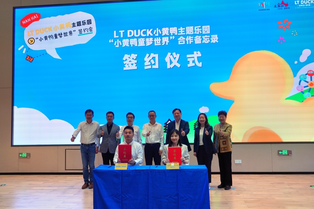 3月28日,“小黄鸭童梦世界”主题乐园项目签约会在西樵镇听音湖有为馆举行。这是全球最大、湾区首个LT DUCK小黄鸭超级乐园,LT DUCK小黄鸭IP同时授权落户南海西樵!