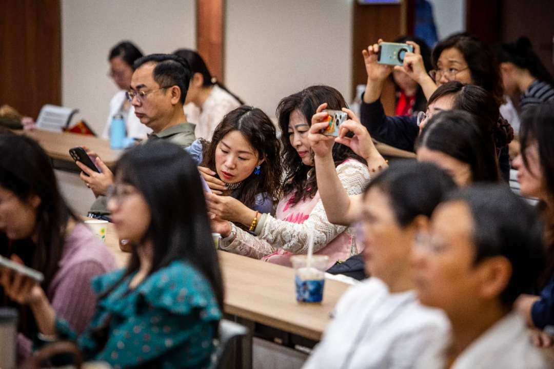 课堂上,任丰讲授了横平竖直、白加黑减和明升暗降等摄影技巧,分享了光线的调整、画面的均衡和后期的处理等摄影经验,干货满满。现场学习氛围浓厚,交流互动频繁。