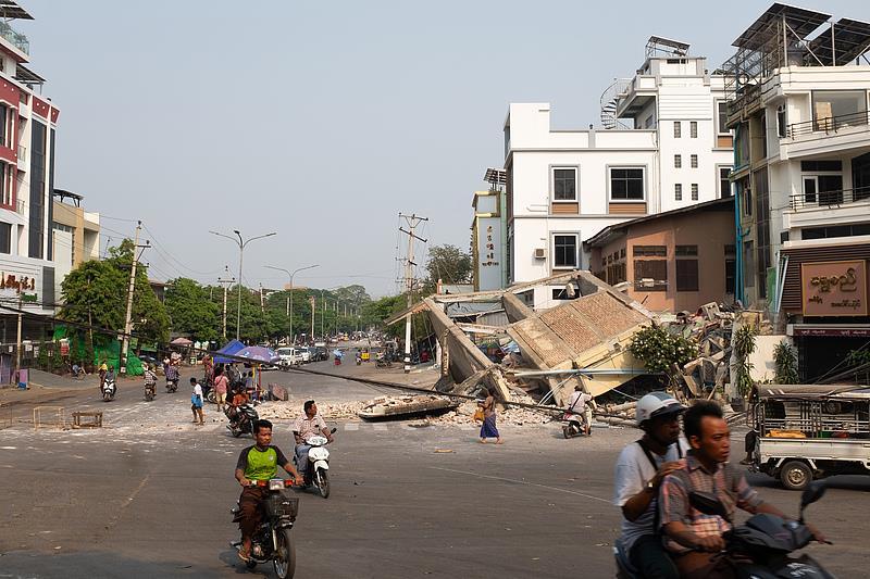 3月28日在缅甸曼德勒省拍摄的受损建筑
