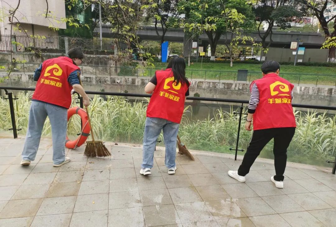 清晨,梅花村街红棉老兵志愿服务队和一群羊城家政基层服务站的志愿者早早地来到了活动地点。活动开始后,老兵和志愿者们沿着河道进行巡查,他们仔细地观察着河水的颜色、水质,是否存在污水排放等异常情况。一旦发现河岸两侧有垃圾,他们迅速行动起来,有的清扫两岸垃圾落叶,有的弯下腰,用手捡起草丛中隐藏的塑料瓶和包装袋,任由汗水湿透了衣衫。