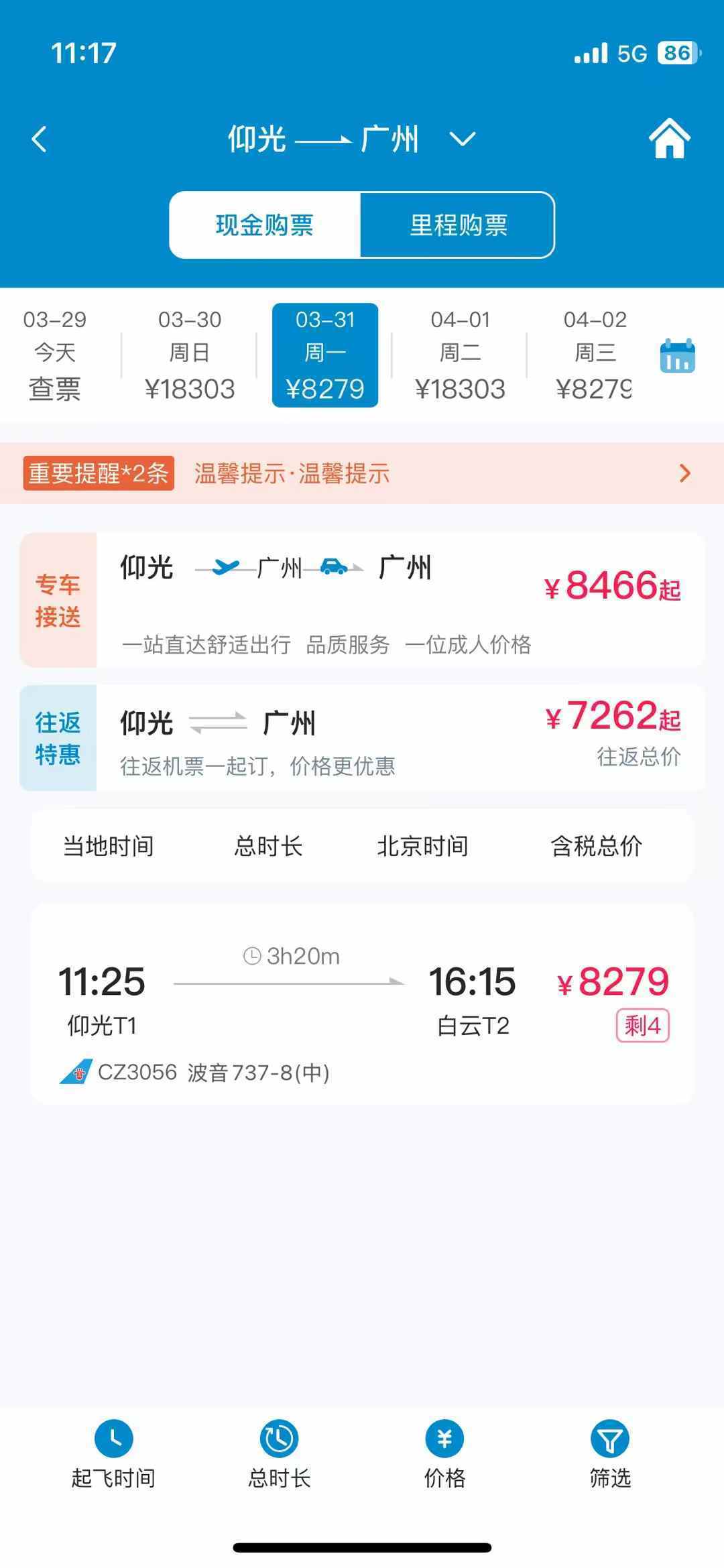 记者查询国航、东航、南航的官方APP后发现,从日前到4月中旬,从缅甸返回中国国内的机票价格处于高位,并持续至4月中旬。目前从缅甸仰光可直飞国内昆明、广州、北京。