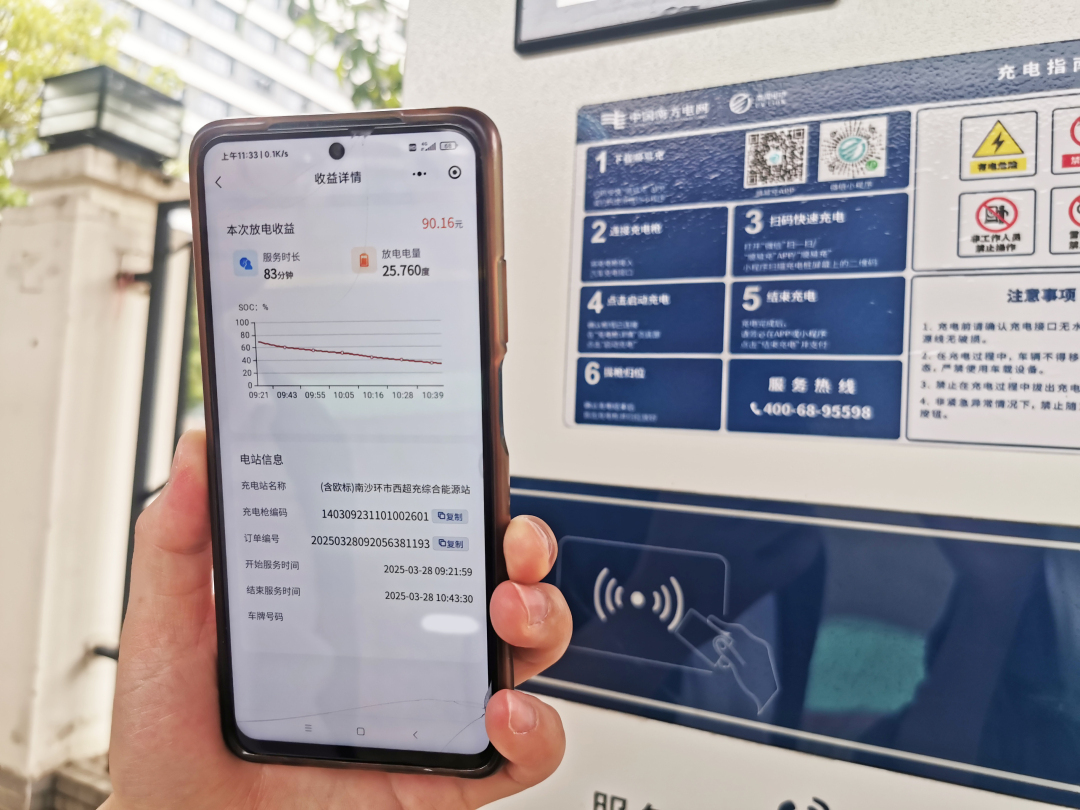 电动汽车车主李先生在南沙上班,通过“顺易充”小程序得知3月28日上午向电网放电可获得每度3.5元的补贴,觉得很划算,一早就来了超充站现场等候。“汽车放电还能赚钱,虽然钱不多,但也够一顿饭钱了,这机会肯定不能错过嘛!”李先生说。