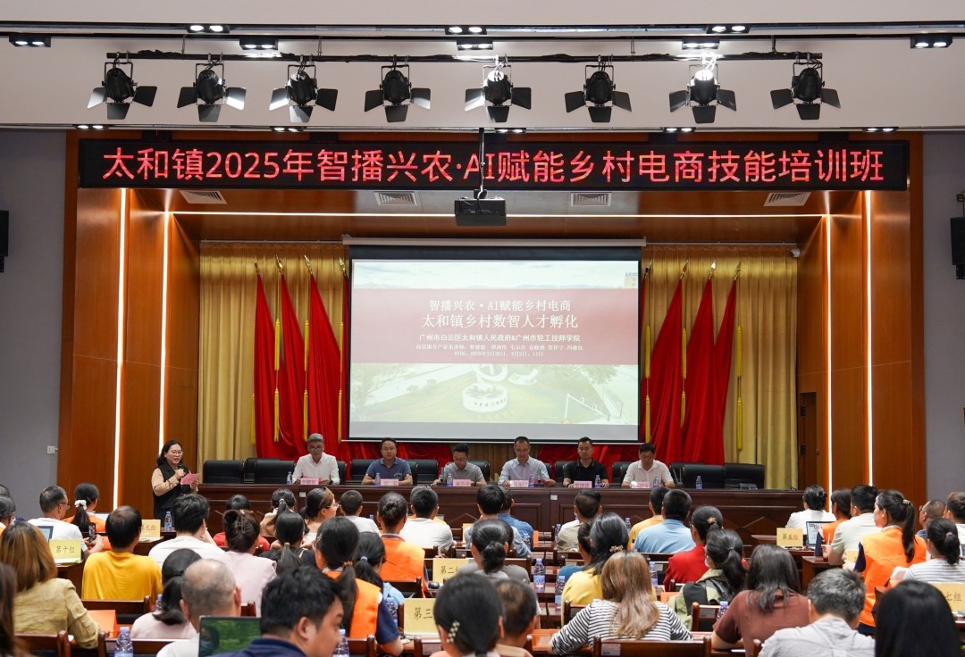 3月28日,广州市白云区太和镇人民政府联合广州市轻工技师学院,举办“智播兴农·AI 赋能乡村电商”技能培训班开班仪式暨乡村振兴电商人才实践基地揭牌活动。本期AI赋能乡村电商技能培训学习班将举办三场,以“政府搭台、院校赋能、企业参与”方式,为148名镇村干部、残疾人士及“新农人”等带来“真金白银”的技能干货,培育农村电商技能人才,拓宽就业渠道,促进本地特色农产品销售,带动群众就业增收,以新质生产力赋能“百千万工程”。