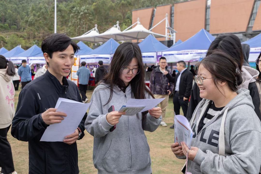 清远市教育局、清远市人社局、共青团清远市委、职教城事务中心等单位联合百度等驻清远重点企业及职教城周边院校,打造“组团式”招聘矩阵。清远市人社局现场宣讲解读“雁归计划”“志愿服务乡村振兴行动”等政策,吸引毕业生扎根清远建设。政校行企多方互联互通,推动供给侧与需求侧的高效协同、教育链与产业链的实时校准,有效强化区域产业与职教资源的深度融合。现场还同步举办了企业宣讲会,多家参会企业表示,“职教城的学生很优秀,学习主动,工作积极,希望能够持续招聘,达成深度合作。”