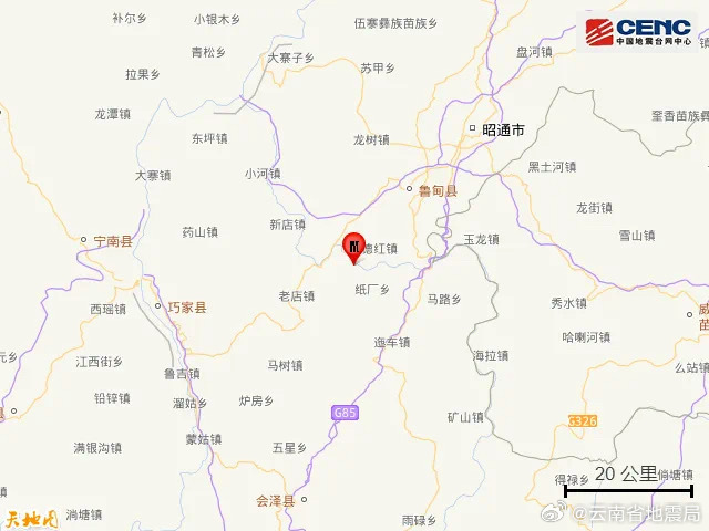 据曲靖市、昭通市地震部门报告,初步统计,会泽县纸厂乡和迤车乡、鲁甸县文屏镇和火德红乡、巧家县苞谷垴乡、昭阳区凤凰街道等地震感强烈,曲靖市双龙街道等地有明显震感。暂未收到人员伤亡和房屋破坏情况报告。