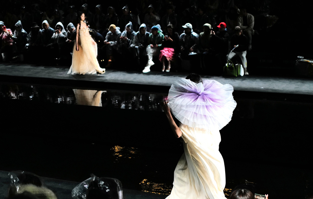 记者现场获悉,大秀以广州塔为背景舞台,在塔下搭建水池,打造“水上T台”。模特身着马面裙、植物染、蓝印花和潮绣系列华服翩然起舞,观众可以在直播间实时下单。据了解,本次大秀由传统的“叫卖直播”,转向“场景+直播+店播”的新玩法,观众可直观感受非遗手工的魅力。
