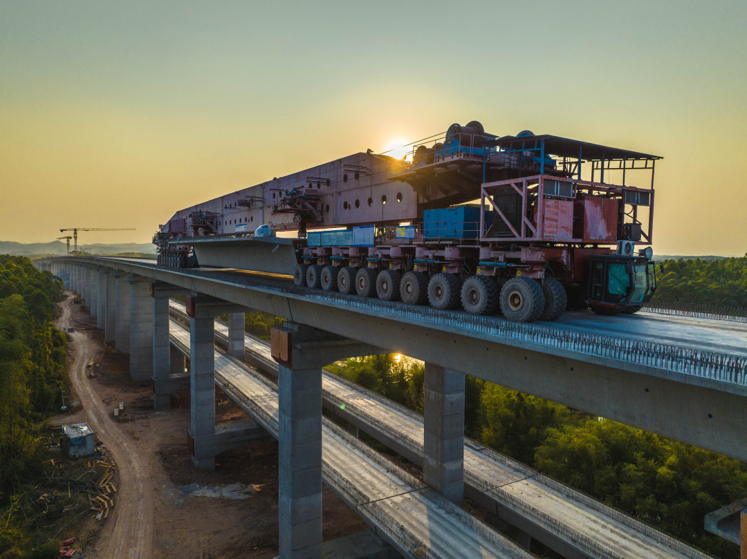 3月29日,随着最后一孔长24.6米、重达527吨的高铁双线箱梁精准就位,广湛高铁机场段重点控制性工程——跨宋隆河特大桥箱梁架设任务圆满完成,这标志着这条横贯粤西的钢铁巨龙再越天堑,项目建设奏响攻坚克难的铿锵强音。