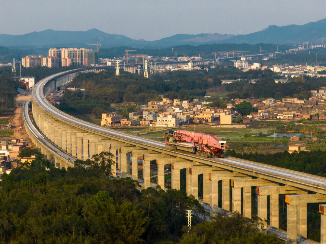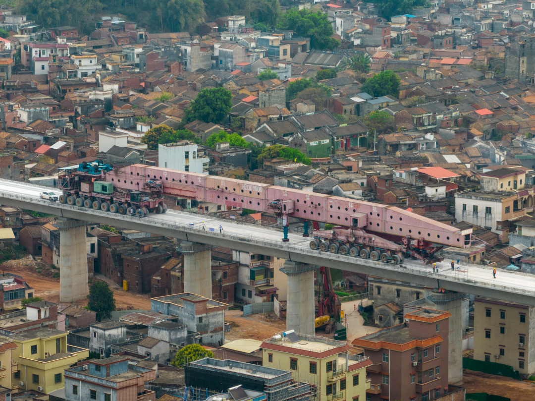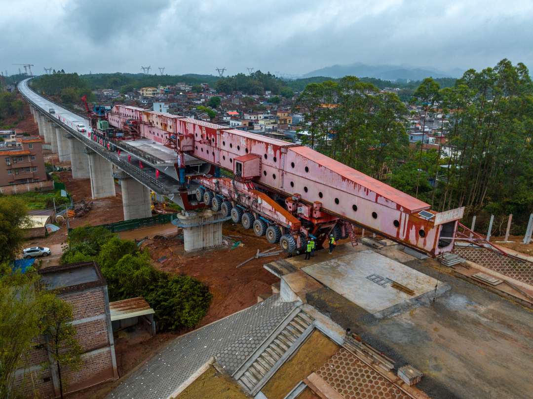 面对跨宋隆河特大桥多次穿越人口稠密区、S272省道及与珠肇高铁交叉作业等复杂工况,建设者以科技创新破局,严格按照设计规范进行精准吊运和架设,架梁过程中使用信息化管理手段进行实时监控,确保每孔箱梁的位置准确无误。