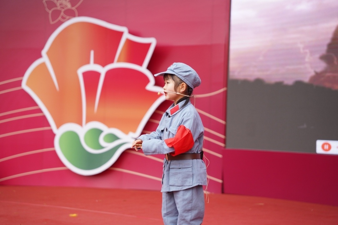 少年赤子心,声声震山河。华南农业大学附属幼儿园小朋友们带来故事分享《一颗没有射出的子弹》,以稚嫩嗓音诉说信仰的重量。广州市天河区沙河小学学生上演舞蹈《你们告诉我》,用刚劲步伐演绎与时代同频共振的决心。广东省二沙体育训练中心表演武术《竹林风骨》,一招一式中刻写国防精神的铮铮誓言。广州市少年宫演出《海边多欢乐》,用青春语态跃动“激情全运会 活力大湾区”的炽热宣言……舞台之上,红色基因与传统文化深度融合,在木棉烈焰中淬炼出新时代的精神火炬。