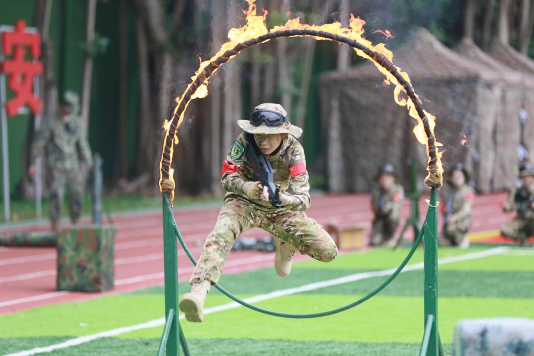 舞台上,新时代中国少年的硬核锋芒在空地一体战术演练中展现得淋漓尽致。由广州市少年宫少年军校的学生,组成战斗队伍,模拟真实战场,开展一场敌我对抗。无人机编队拉烟划破长空,学生队员们既有地面突击队利剑出鞘,也有滑跪破障练就果决胆魄,还有火圈腾跃淬出无畏锋芒,青春呐喊穿透模拟硝烟,协同冲锋的身姿,如未来中国军队最炽热的缩影,冲锋在前,勇往直前。