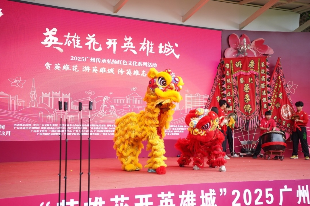 木棉纷飞处,历史与艺术共舞。升国旗仪式之后,多个精彩演出在舞台登场。北胜蔡李佛保护传承基地上演非遗醒狮踏鼓跃腾,铿锵锣鼓中,“踔厉奋发强国防、勇毅前行向复兴”的红色卷轴凌空展开,传统非遗与国防教育的创新融合瞬间点燃现场。