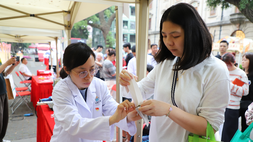 市集现场,同样精彩纷呈。荔湾区骨伤科医院联同华林、逢源、多宝、昌华等四个社区卫生服务中心设置了多个特色摊位。名医义诊区排起了人龙,西关正骨非遗代表性传承人为市民把脉问诊,耐心解答健康问题;运动康复疗法体验区,治疗师以传统西关正骨手法帮助市民缓解肩颈疲劳。中医适宜技术体验区同样人气高涨,耳穴压豆、易罐疗法、温通刮痧等传统技艺吸引众多市民体验。西关正骨护理团队现场演示了杉皮夹板制作与固定手法,小小夹板体现了中医药的大智慧。