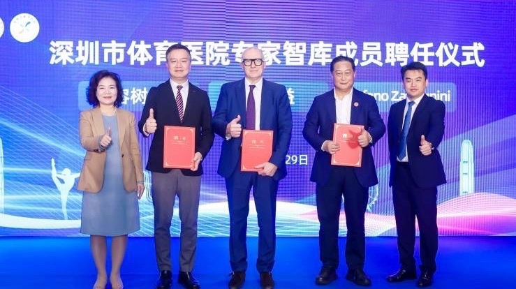由粤港澳三地共同举办的第十五届全运会将于11月举行,当前深圳也正在加快建设“国际体育名城”。目前,依托北大深圳医院、深圳市新华医院建设的深圳市体育医院已正式揭牌,在此次研讨会上,聘请了意大利的国际著名运动医学专家Stefano Zaffagnini教授、深圳市“三名工程”运动医学首席专家陈世益教授、香港大学医学院副院长容树恒教授等专家作为深圳市体育医院智库专家,并带来了前交叉韧带OTT技术和人工韧带重建技术手术演示指导。