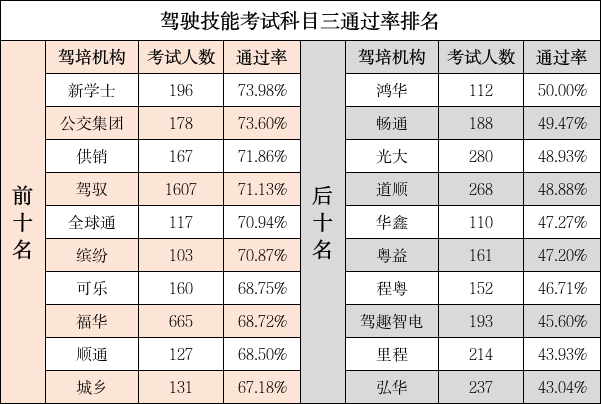近日,广州市交通运输部门发布2025年2月广州市机动车驾驶员培训服务质量榜单和消费提醒,供广大学车消费者参考。