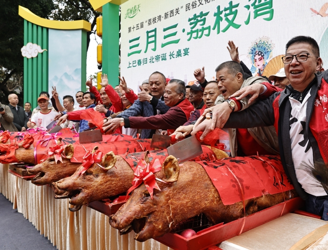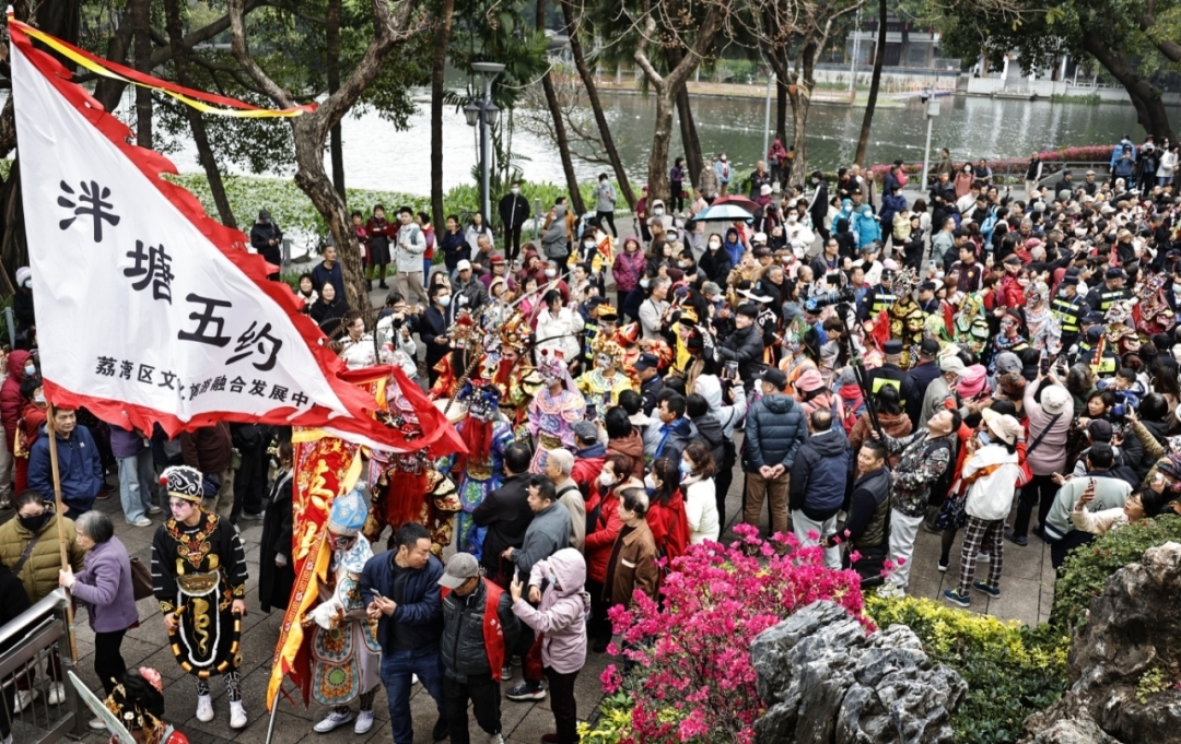 农历三月初三,岭南水乡有拜北帝、祈求风调雨顺的传统习俗,有着至少900年历史的岭南古村——广州荔湾泮塘村临靠荔湾湖,至今保留北帝诞等特色民俗。3月31日上午,第十五届“荔枝湾·新西关”民俗文化活动之“三月三·荔枝湾”——上巳春归 北帝诞 长桌宴在荔枝湾景区正式拉开帷幕。活动以泮塘乡情、民俗巡游、上巳踏青、长桌盛宴四大篇章,与市民游客共赴一场穿越时空的传统文化之约。