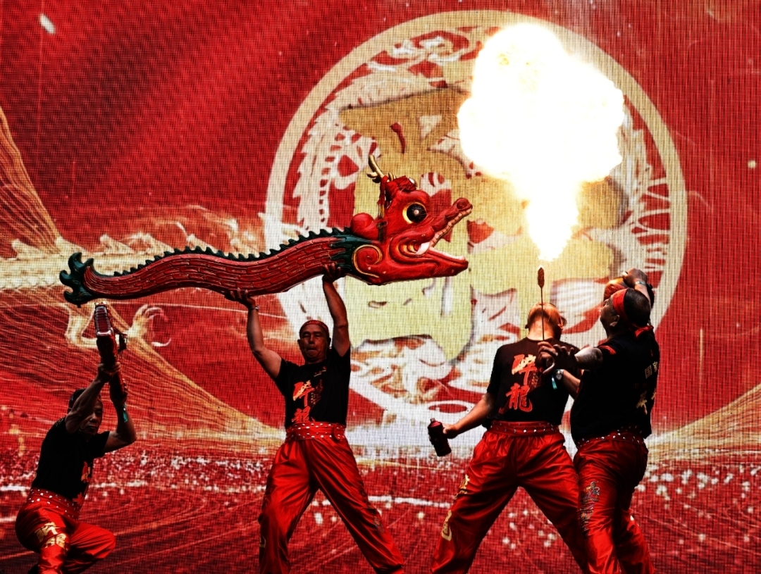 来自中山的醉龙舞民俗源于古代祭祀活动,具有浓厚的地方特色和文化内涵。舞蹈中使用“醉龙”道具,舞者手持龙头和龙尾,模仿醉酒后的踉跄步伐,动作夸张幽默,观赏性十足。