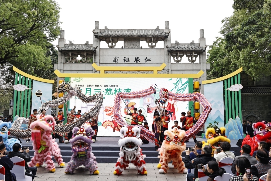 3月31日上午10点,广州荔湾仁威庙牌坊广场上,舞龙、醒狮献瑞,泮塘村龙狮队的精彩表演为现场观众带来了极具岭南民俗风的开场表演。