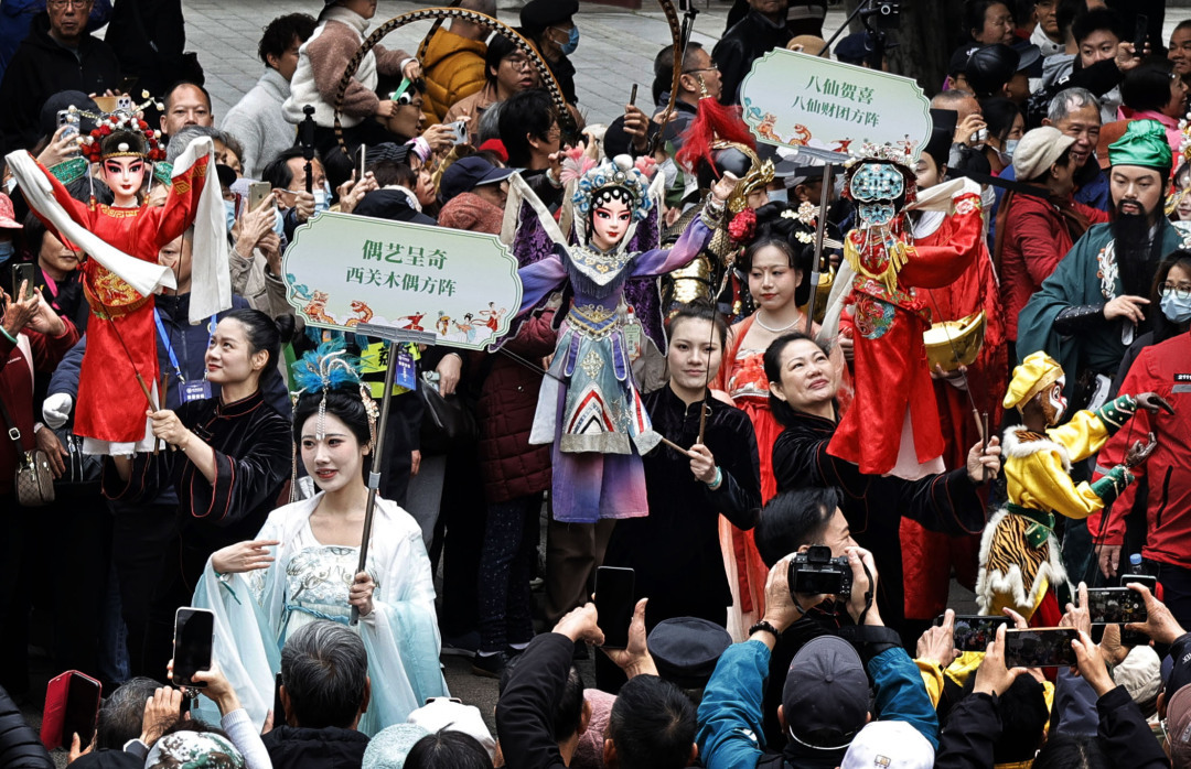 偶艺呈奇方阵来自西关木偶剧团。西关木偶戏源于明清时期,兴盛于清末民初,与广州西关地区的民俗文化紧密相关。西关木偶以提线木偶为主,表演形式细腻生动,兼具娱乐性和艺术性。西关作为广州历史上的商贸和文化中心,为木偶戏的发展提供了丰富的土壤。