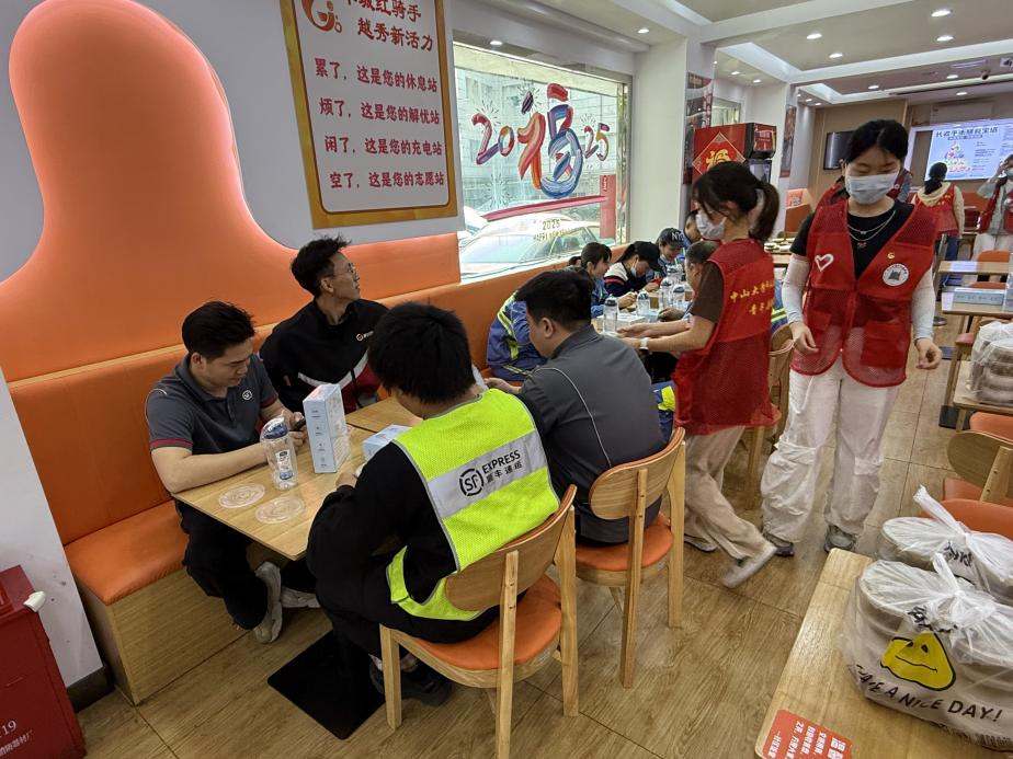 “社会的温度,正源自无数平凡个体的相互照亮。正是无数基层工作者披星戴月地劳作,才让我们的生活正常运转。为他们送上一份糖水,是对他们的致敬,也是身为青年应尽的社会责任。”活动现场的青年志愿者表示。