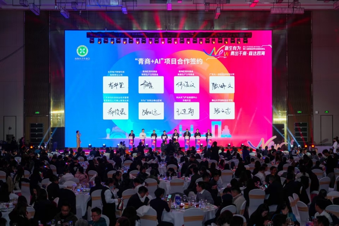 活动现场,《南海青年企业家服务计划》正式启动,“五大专委会”将聚焦科技、人文、全球化等核心领域,以“新质生产力”夯实产业根基。“青商+AI”项目签约,华为、科大讯飞、北京电子数智科技、中科科创、大一资本、佛大双创学院与南海青年商会携手,为制造业强区注入人工智能转型新动能。