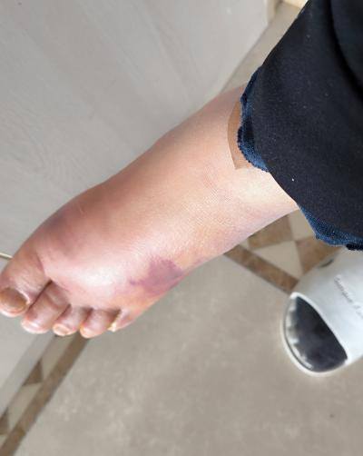 经历三次手术后,韩叔的创面逐渐愈合,瘢痕增生但皮片成活良好。他终于能拄着拐杖下地行走,足趾也能微微活动。
