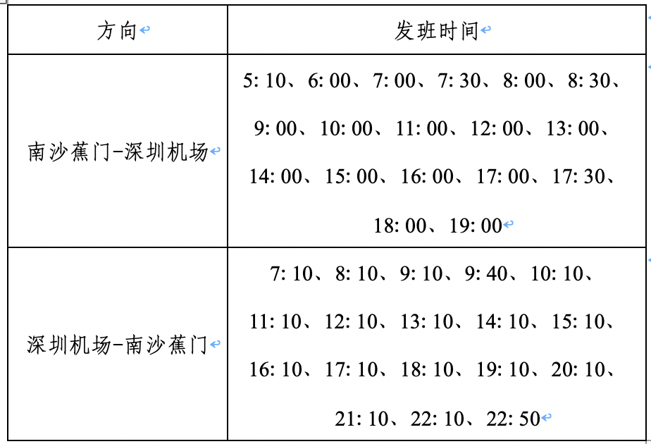 根据深圳宝安国际机场航班时间,为进一步满足乘客的出行需求,4月3日起深圳往南沙方向取消18:40班次,并延长服务时间至22:50。