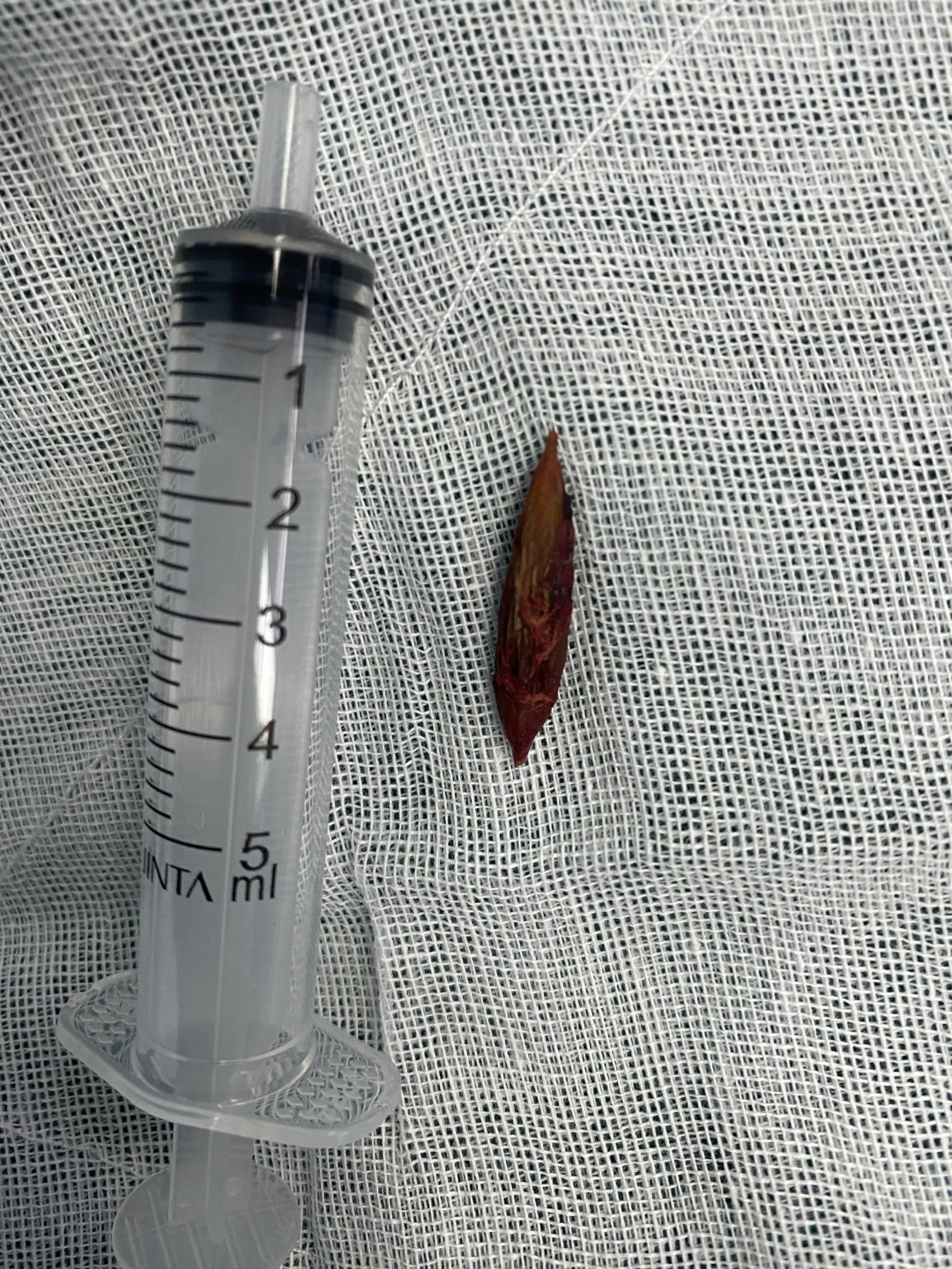 在急症科的全力配合下,李奶奶从急症科室径直入手术室进行了急诊手术。手术室里,医生小心翼翼取出那颗“罪魁祸首”——枣核两头尖得像针,难怪能刺穿肠壁!最终,破损的肠子被成功修补,李奶奶捡回一条命。