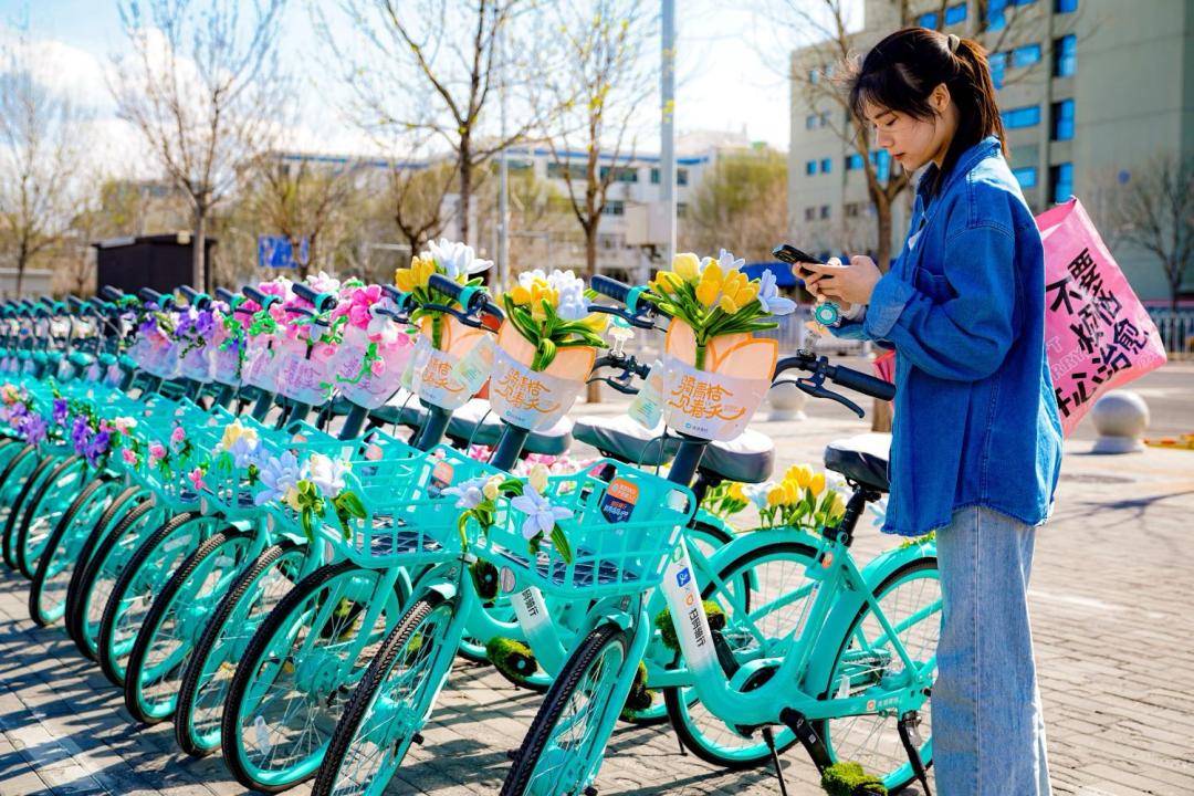 滴滴青桔单车将骑行服务与春日美学相融合,车身由色彩绚丽的扭扭花装点。骑行时,花朵随风轻摇,充满生机。车头主题板同样被花朵簇拥,“骑青桔,见春天”几个字将春日的浪漫氛围烘托到极致。香雪兰的清新、樱花的烂漫、郁金香的优雅,让每一位骑上滴滴青桔“花花车”的用户,感受到满满的春日活力。