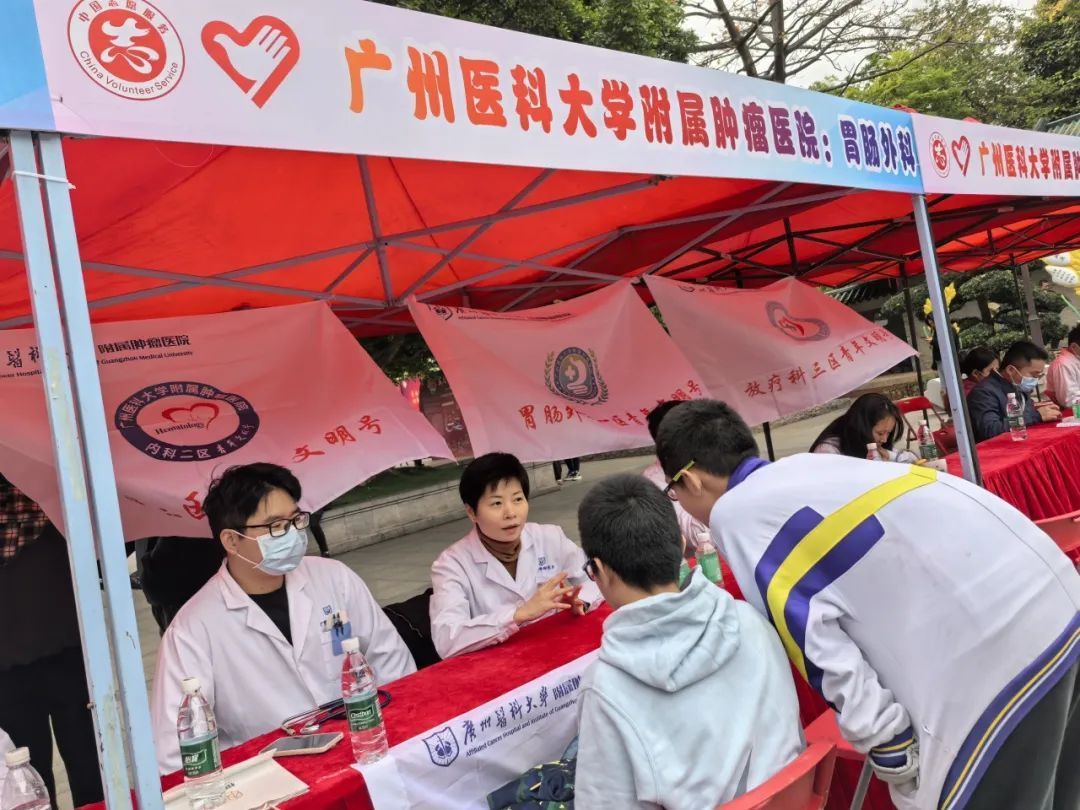 本次集市,来自广州医科大学附属肿瘤医院15个省、市级青年文明号集体在现场开设了10个爱心义诊摊位。活动现场气氛热烈,前来咨询和接受义诊服务的居民络绎不绝。现场医务人员热情接待每一位来访者,免费提供血压、血糖测量服务,并详细询问每位居民的身体状况,耐心解答他们关于健康管理的各种疑问。同时,针对日常生活中常见的健康问题,如合理膳食、规律作息等,医务人员也给予了专业的建议和指导。