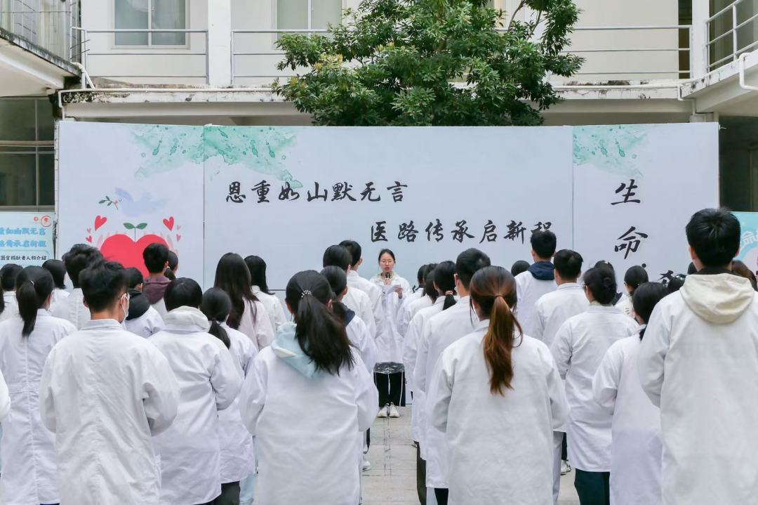 第三场活动主要面向毕业生群体展开。作为即将踏入新阶段的医学生来说,五年的成长离不开大体老师的付出,大体老师为其日后的解剖知识和手术技能巩固了基础,同时也让他们深刻地理解生命科学的内涵,感悟生命的可贵。人体器官捐献协调员谭彩梅也来到现场向学子讲述自己在工作中的见闻感受。她说:“我认为身体的死亡并不是真正的死亡,当一个人的遗体被用于更有意义的事情上,其生命便得到了延续。生命延续是逝者为这个世界留存的温暖,给无数绝望中的家庭带来一道曙光。”