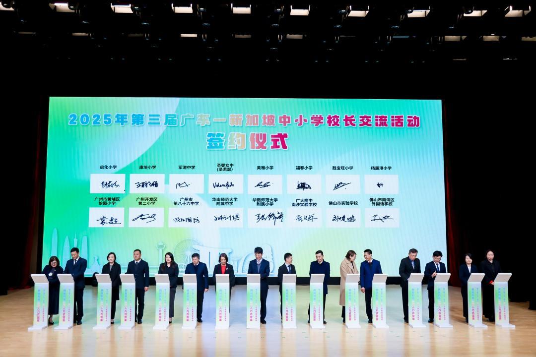 在广东省教育厅和新加坡教育部签订的教育合作与交流备忘录框架下,双方已促成16对粤新姊妹学校结对。在交流活动中,8对粤新中小学姊妹学校进行现场签约,展示粤新合作新成果。