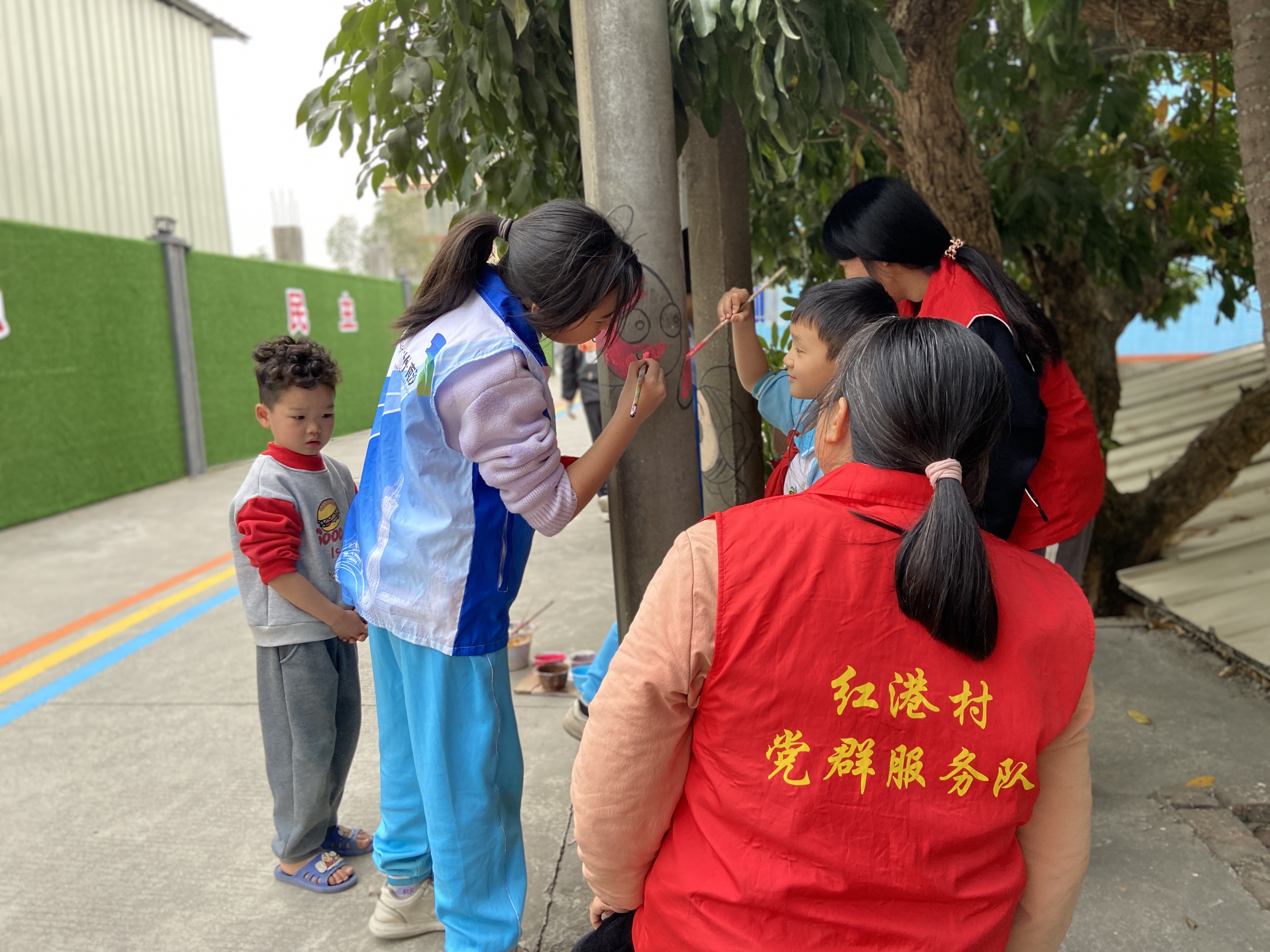 一边乡村容貌持续提档升级,一边村里的文化活动也开展得有声有色。在位于红港村村委的党心乡情小展馆内,一群儿童宣讲员正在接受培训,他们通过学习村史、文化等知识,逐渐成长为村里的“小导游”。据何燊花介绍,村里重视“一老一小”群体需求。针对小朋友,村委通过开展河涌巡查、渔民文化、种植养护植物等主题活动,培养了他们的主人翁精神;依托党心乡情小展馆,重点培育孩子们的文化传承意识,例如,在活动中邀请老渔民向小朋友们传授渔网编织传统手艺,不仅让孩子们了解了传统的渔业文化,还培养了他们的动手能力和创造力,让古老的技艺在新一代中得以传承。目前,儿童宣讲员的培训已初见成效,孩子们逐渐在村民参观、外来研学团接待等活动中担任讲解角色,他们带领游客参观展馆,用稚嫩的声音讲述红港村的故事。而这一培训计划会在红港村持续实施,小宣讲员们将在寒暑假期跟随村委不断夯实讲解能力,增强对家乡的认同感和责任感,守护文化根脉。对于长者群体,村委更擅长以文化与情感为纽带,通过组织如政策宣讲、手工活动、参观学习等各类主题活动,凝聚村民力量,带动提升乡村凝聚力。
