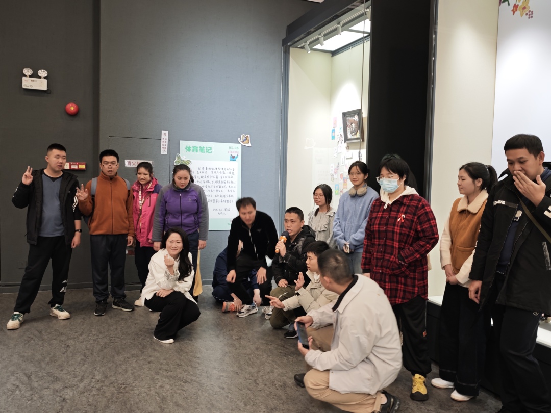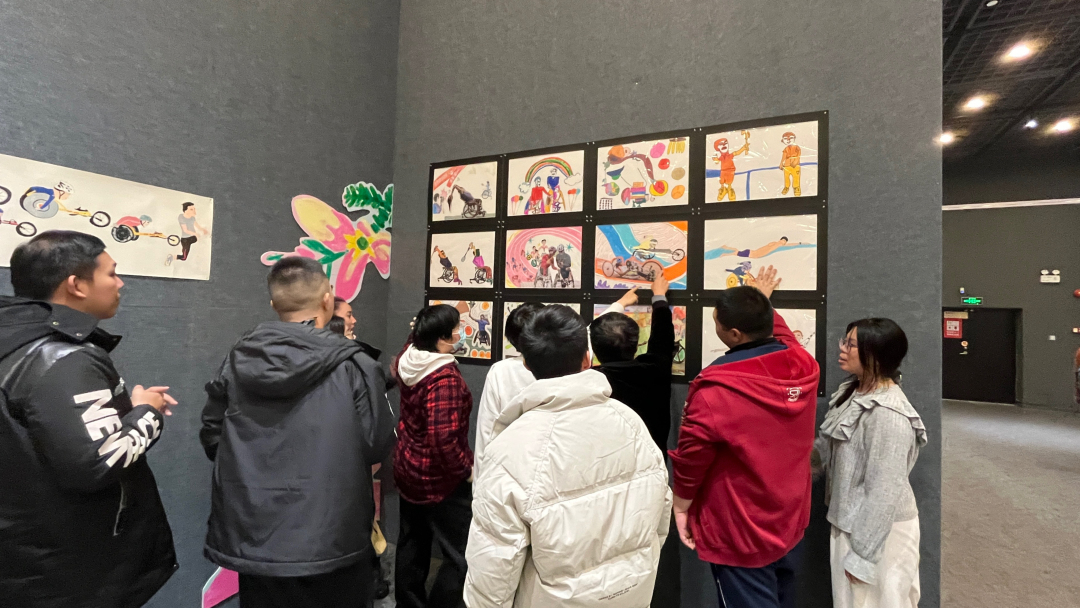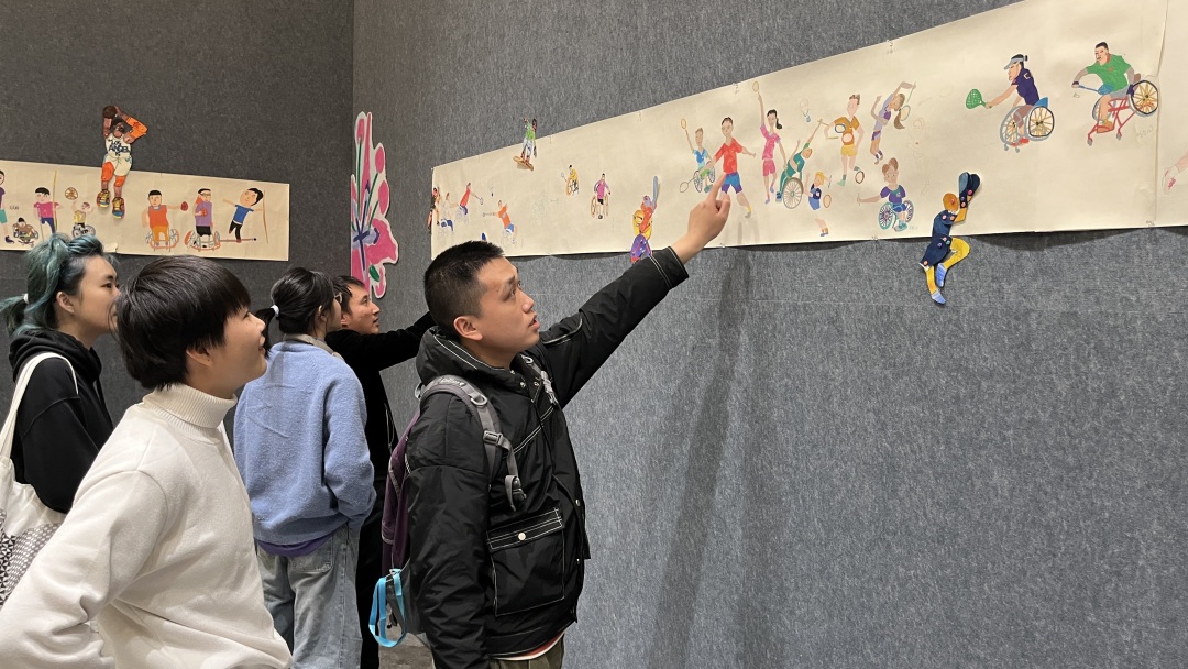 该展览为广东省残联、广州市残联指导,广州图书馆、广州国际残障人文化交流中心主办。广州市残联百企百艺公益项目作为展览的执行方,为此次展览筹备良久,从2024年11月份开始每周日的常规绘画课堂中便着手让心青年们学习残障运动员的相关知识并进行长卷、画作等创作,而作为主创的青年大学生团队更是作为长期志愿者,陪伴、引导心青年进行绘画,也正是因为长期支持陪伴带来的了解、熟悉,她们也更加希望心青年的故事能通过用艺术表达出来并被更多人看见。“当我们抛开偏见,用心阅读这些笔画时,会发现其中蕴含的情感、梦想与困惑,与我们并无二致。”志愿者王栩栩这样分享道。