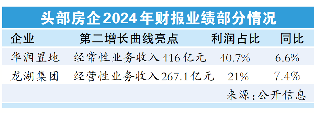 类似的情况还有龙湖集团,该公司年报显示,2024年运营及服务业务合计实现收入267.1亿元,同比增长7.4%,在集团营业收入中的贡献占比达到21%,成为龙湖集团收入、利润及现金流的重要贡献源。除此之外。华发股份、绿城中国等多家开发商均在年报中显示了对于业务多元化的信心。