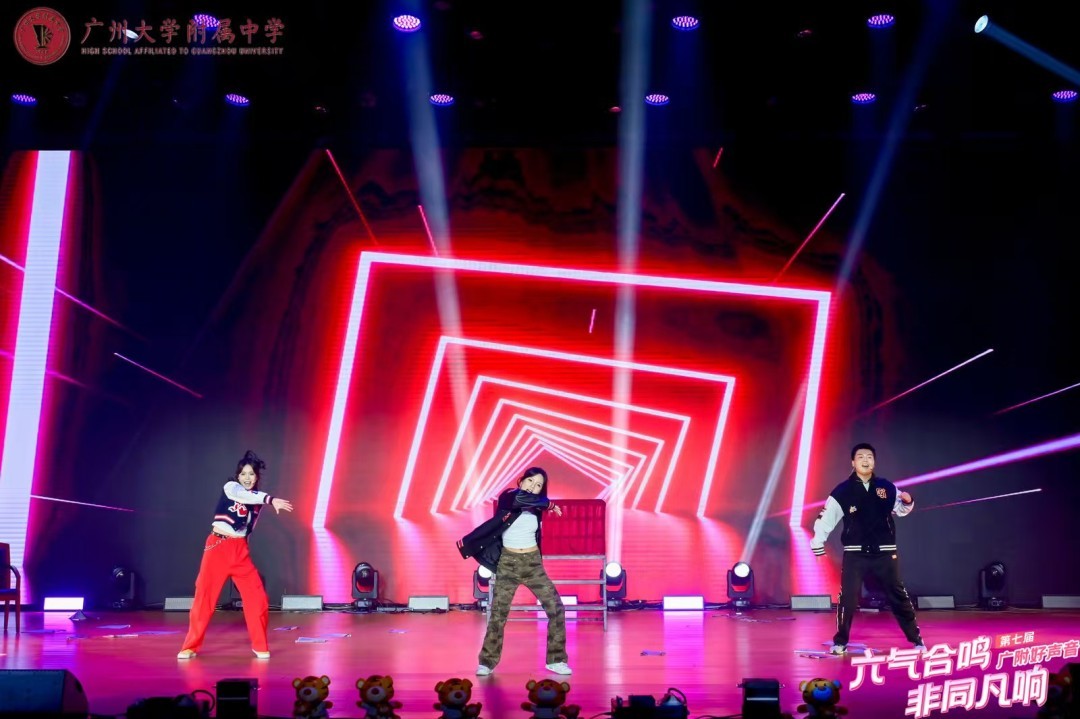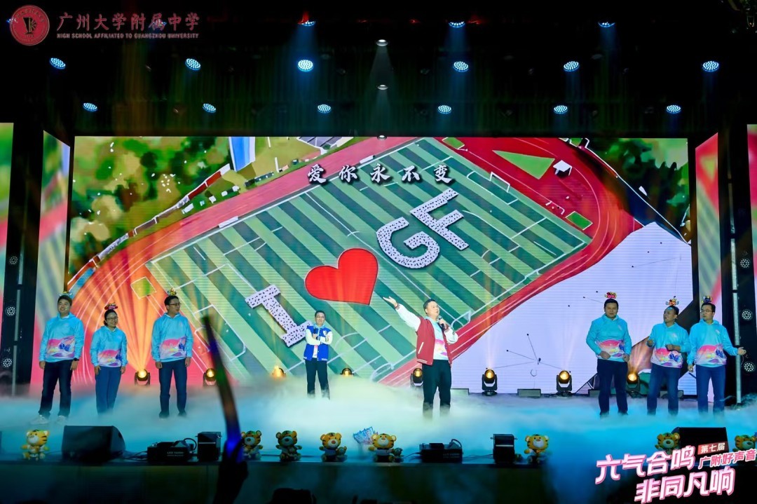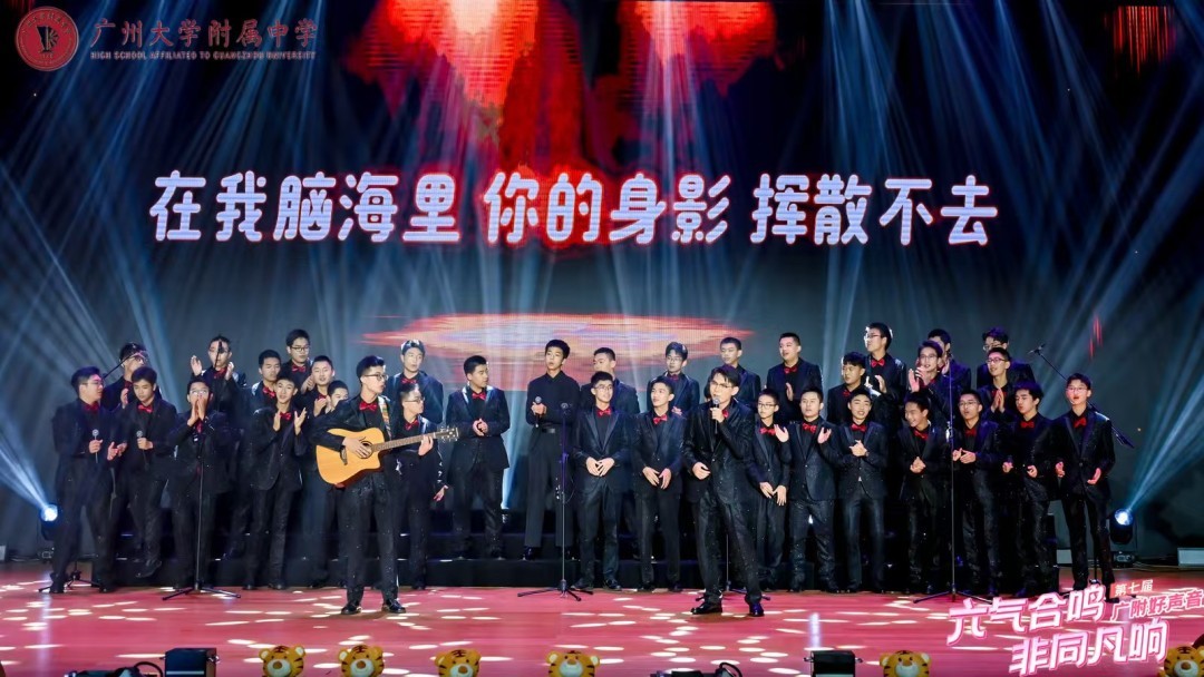 现场狂飙海豚音、神级转音技惊四座、动人和声余音绕梁……..4月1日晚,作为艺术节的重磅活动之一------广州大学附属中学(简称“广大附中”)第七届好声音总决赛在大学城校区举行。12组选手在舞台上激情全开麦,让人惊艳的现场表演展现了广附学子的“非同凡响”。书记、校长和六位级长献唱校园改编版《千年等一回》,让全场气氛瞬间达到高潮。