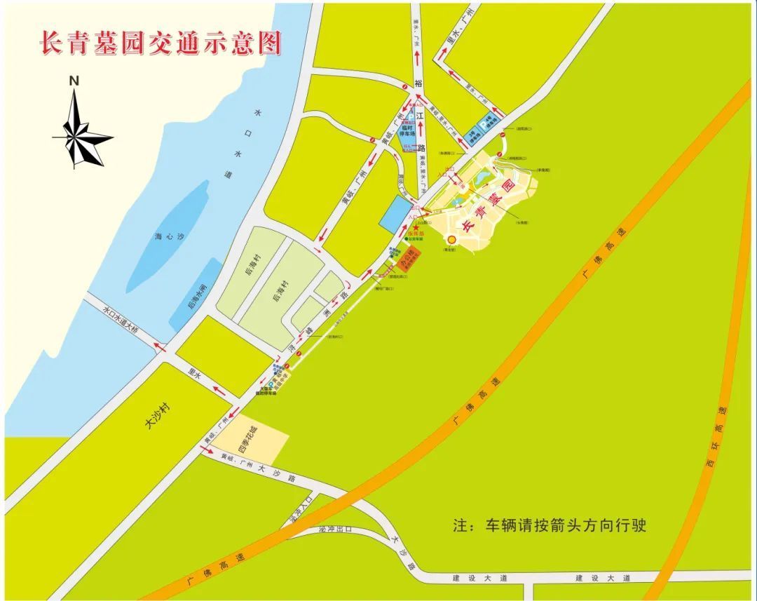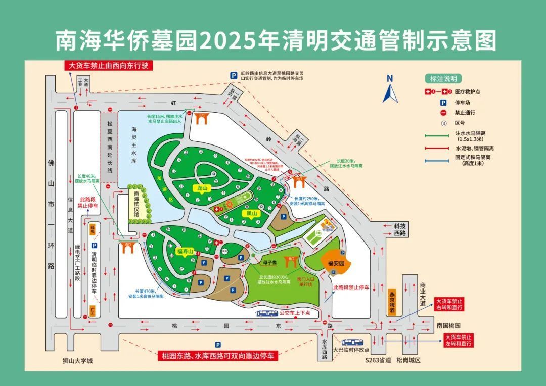 清明节假期及其后4月的各个周末的当日8时—17时,禁止过境车辆从广佛江珠高速辅道和电厂大道进入墓园区域内。