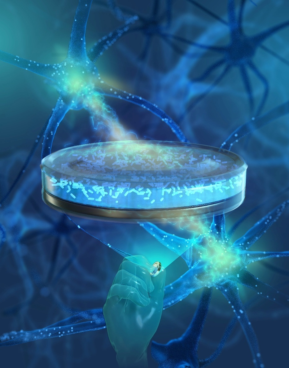 该项成果来自中国科学院深圳先进技术研究院(简称“深圳先进院”)定量合成生物学全国重点实验室钟超团队联合深圳先进院集成所神经工程中心刘志远团队、深圳大学王任衡团队,目前已经在《先进材料》上发表。