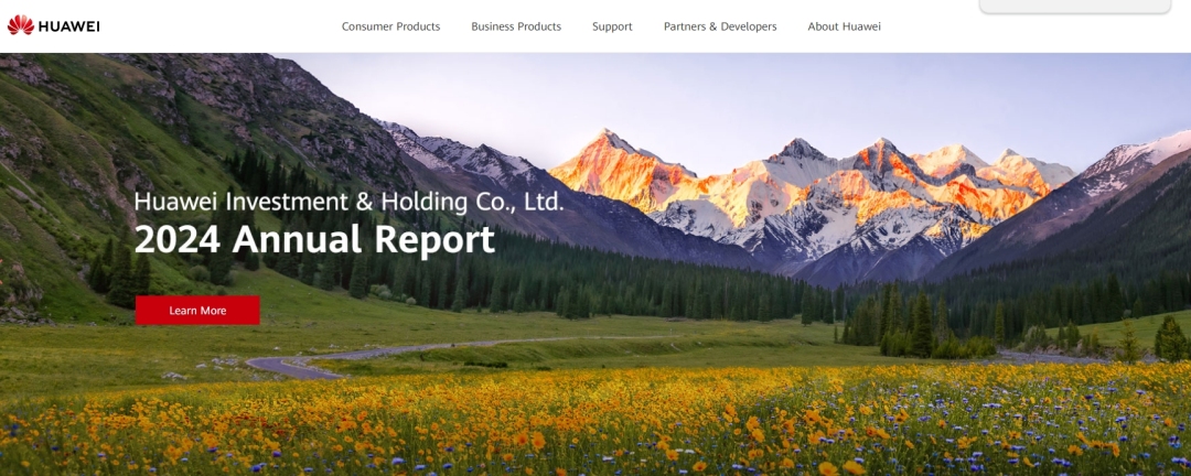 Screenshot of Huawei's official English website