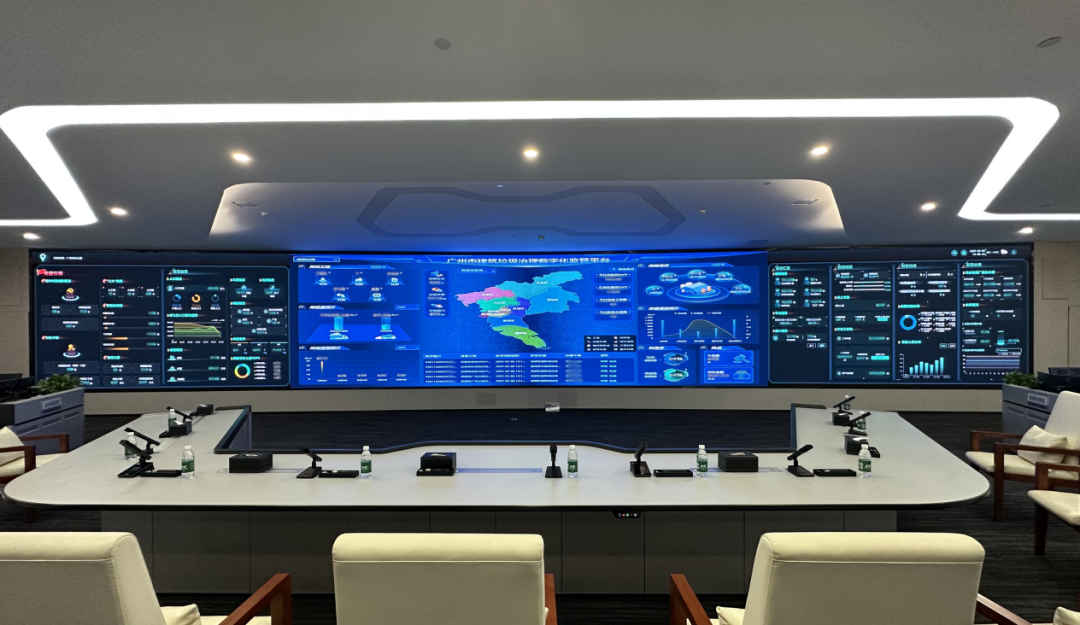 在白云区城市管理监控指挥中心,大屏幕上的广州市建筑垃圾治理数字化监管平台以多种图表形式直观展现全市在建工地、处置终端、运输企业等信息,并实时更新全市当日建筑垃圾产生情况与联单数据。