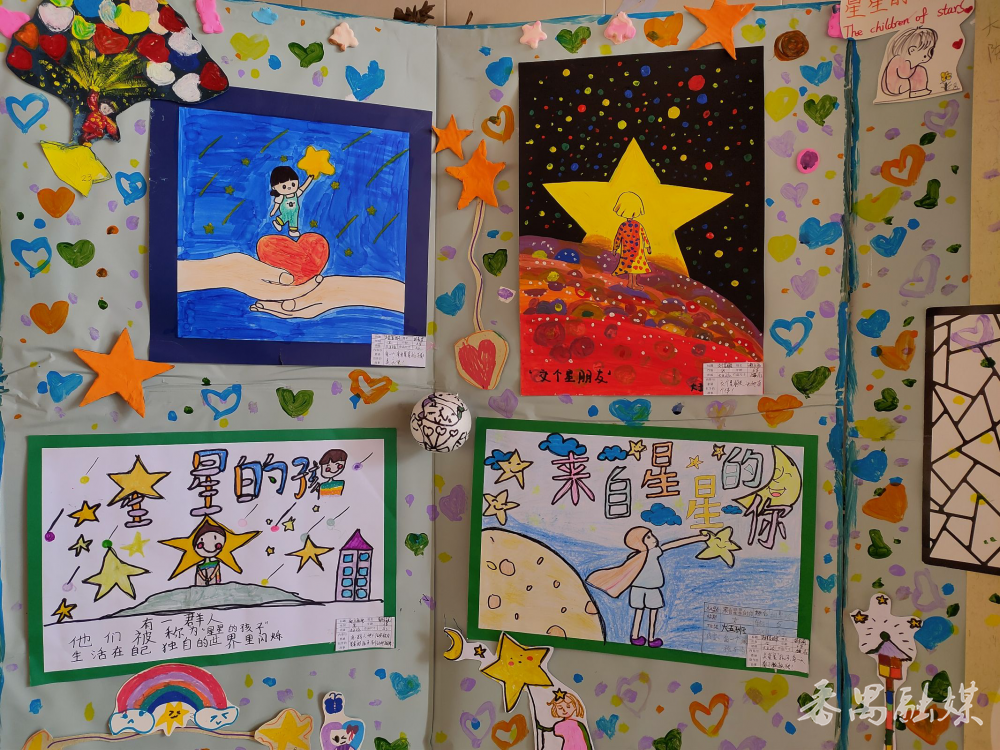 各校(园)积极响应,师生共读《“星语心愿・共筑未来” 倡议书》,承诺关注孤独症人士。教师们还观看了番禺区特教指导中心制作的 “孤独症儿童的教育策略” 微视频,学习教学融入专业支持的方法。校园内,特需学生的作品组成 “星光长廊”,师生们驻足欣赏,感受他们蕴藏的无限潜能。