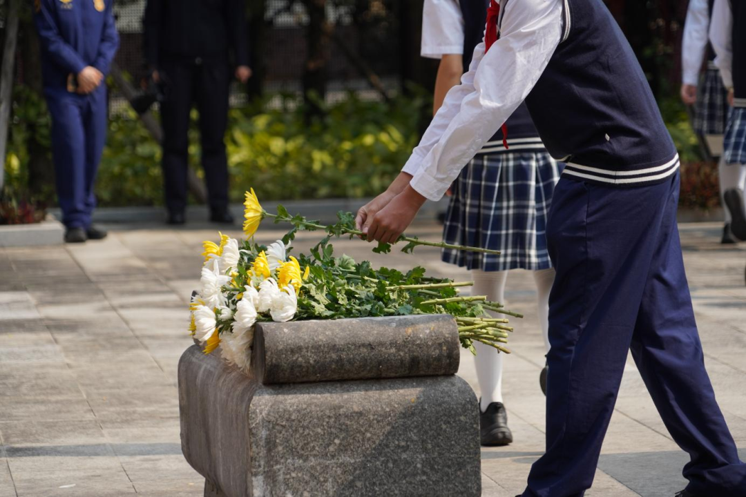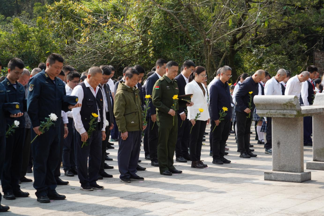 活动最后,全体人员手持素菊,列队缓步走向庄严的纪念碑。当洁白的花束被郑重摆放在碑座前,众人肃立垂首,以三度深躬完成跨越时空的精神对话。