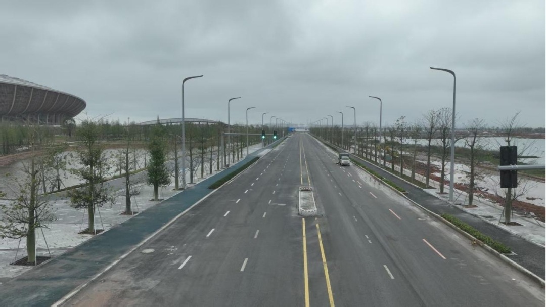 南沙全民文化体育综合体配套骨干道路建设是落实《广州南沙深化面向世界的粤港澳全面合作总体方案》、扎实推动南沙南部地区开发建设、将南沙南部地区链入粤港澳大湾区交通网络的重要举措。在南沙大型城市综合体建设指挥部统筹指挥下,南沙区政府相关部门落实南沙南部地区城市规划设计的高质量发展要求,组织广州市高速公路公司、南沙区建设中心、南沙交投集团等建设单位在万顷沙十九涌以南区域开展道路工程大会战,克服了万顷沙淤泥软土地基、管线迁改等困难,奋战12个月新建市政道路(双向六车道)约6公里,新建跨万顷沙二十涌、二十一涌桥梁8座,一步一个脚印,把规划蓝图变成南沙城市实景图。
