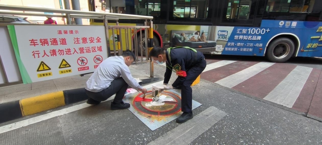 获悉此情况后,公交站场管理公司迅速采取相应措施,确认该站入口区域为锦城花园小区与公交站场的公共区域。随后,公交站场管理公司与小区管理方进行沟通,共同商定处理方案。基于路面的实际情况,公交站场管理公司安排专业人员在了解情况的次日完成了路面裂缝的平整修复工作,以保障市民乘客的出行安全与顺畅。并在入口两端增加告示标牌、喷涂行人禁行的通行标识(地标)等,引导市民乘客走斑马线,共同维护公交站场的运营秩序。