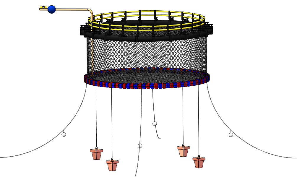 据了解,目前广东省HDPE重力式网箱使用占比达90%。相较于“珠海琴”这类桁架网箱平台,重力式网箱造价更低,可以满足渔民小规模海洋养殖的需求,是广大渔民最容易配置主要装备型式。“针对这个(问题),我们设计出新型可升降重力式网箱,在台风工况下,通过气囊升降将网箱下沉至水面以下5-10米,能有效保障网箱本身和鱼的安全,具有抗风浪能力强、安全性高、可规模化推广应用等特点。”项目负责人海洋工程与技术学院教授许亮斌介绍。