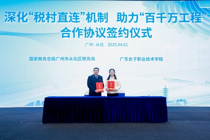 4月1日,国家税务总局广州市从化区税务局与广东女子职业技术学院在从化区鳌头镇龙潭村联合举办“税惠赋能百千万 直连共筑振兴路”税校合作签约活动。